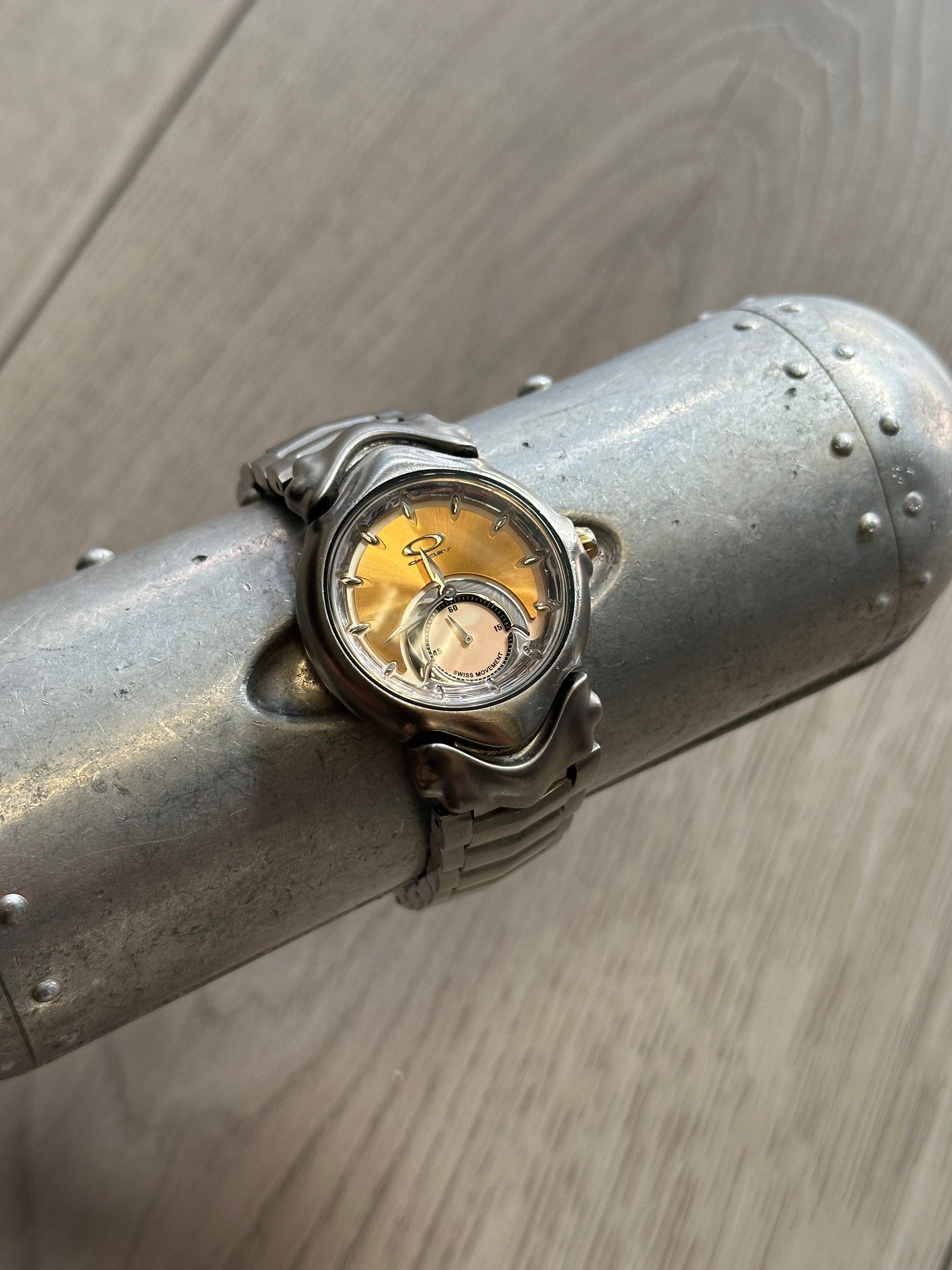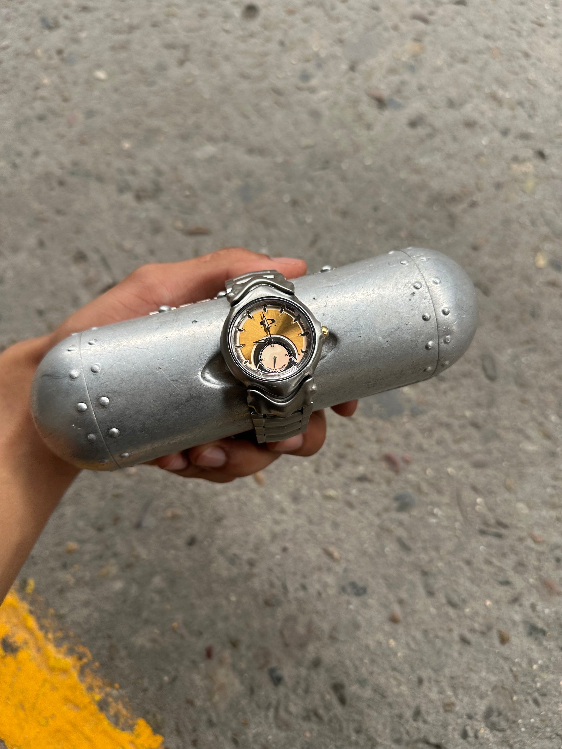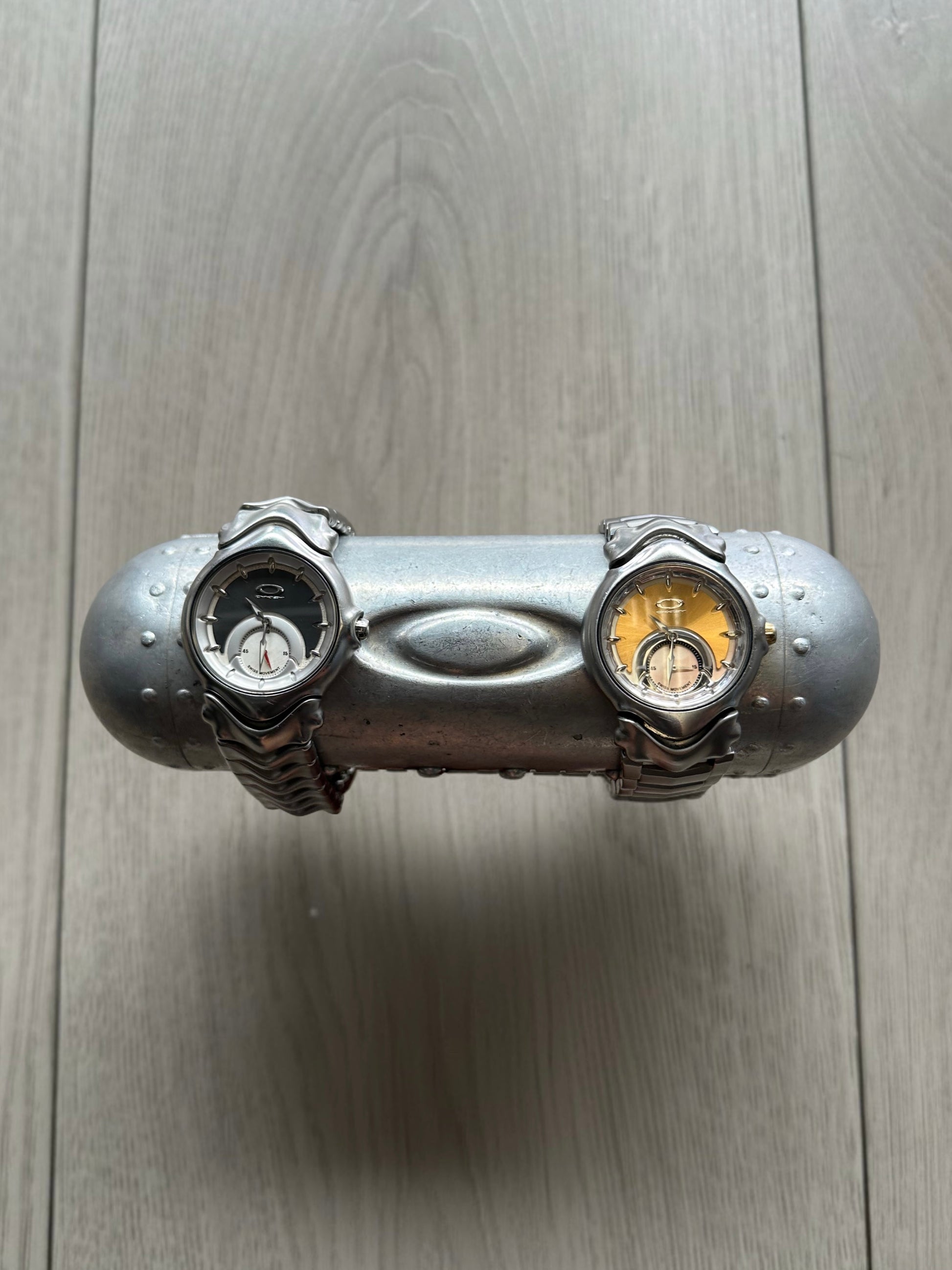 Iconic Oakley timepiece with gold-plated finish and industrial Jury 1.0 design. Very good condition, no major flaws — an ultra-rare collector’s item.