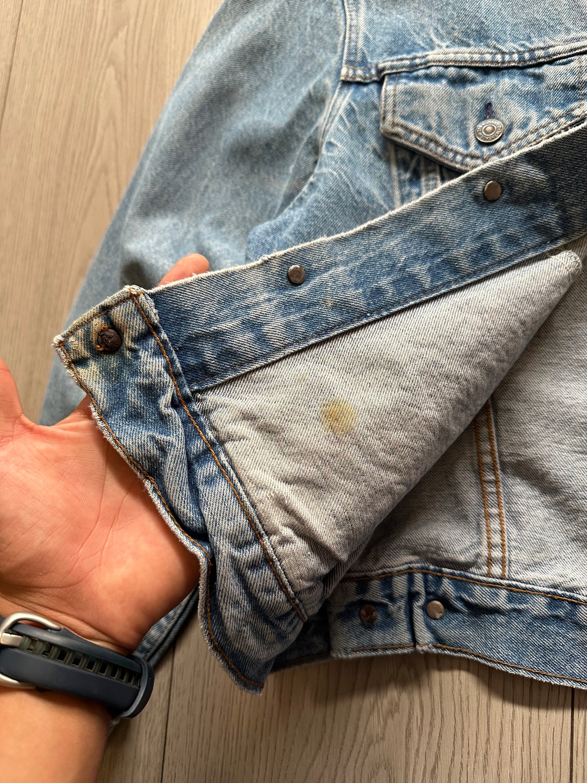 Classic denim trucker with authentic 00s construction, broken-in fade, and true workwear character. Signs of wear add to its vintage patina.