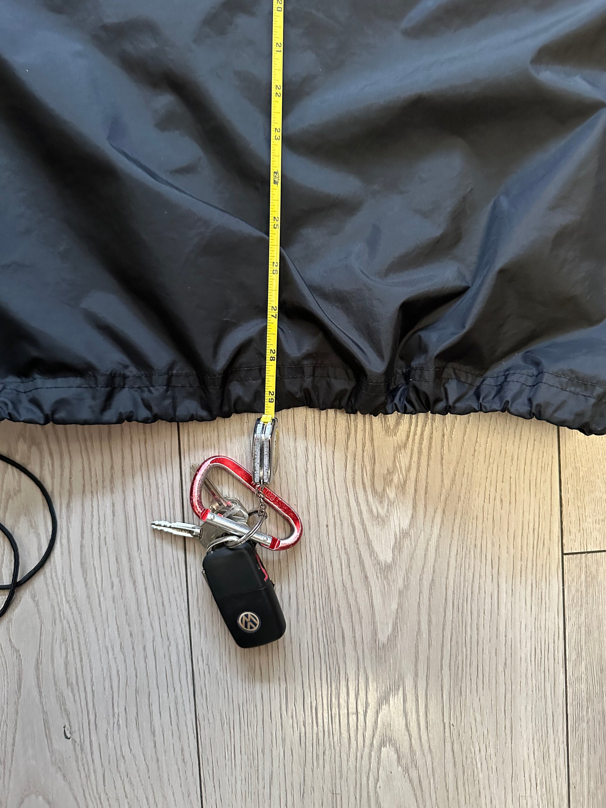 Lightweight nylon shell with central Nike logo and packable design. Shows a small front stain (visible in photos) but remains fully functional.