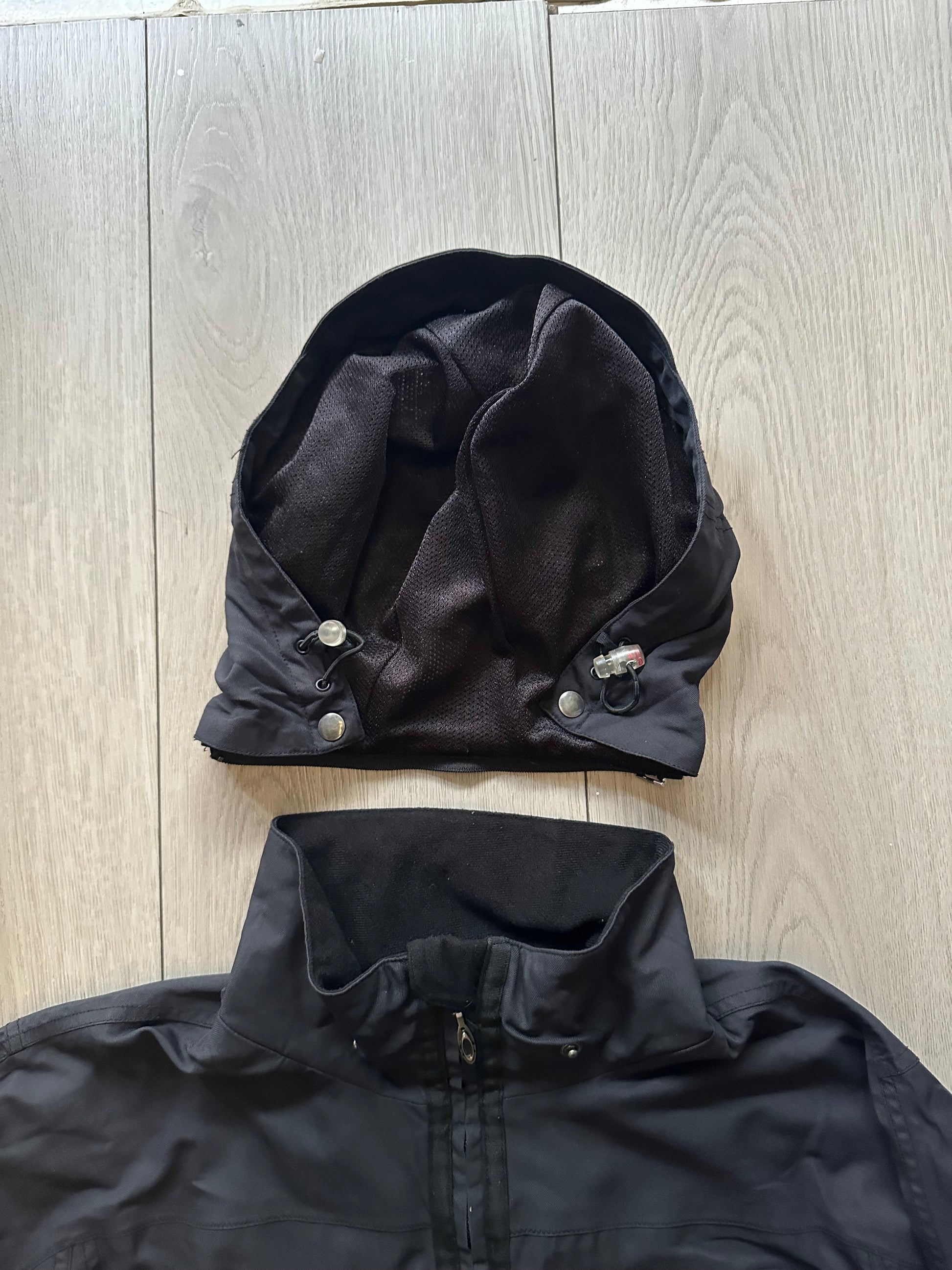 Rare Oakley archive piece loaded with 90s tech details: removable hood, inner sleeve “gloves,” transparent pocket panels, multiple zippers, and adjustable waist + hood toggles. Built with full tactical functionality.